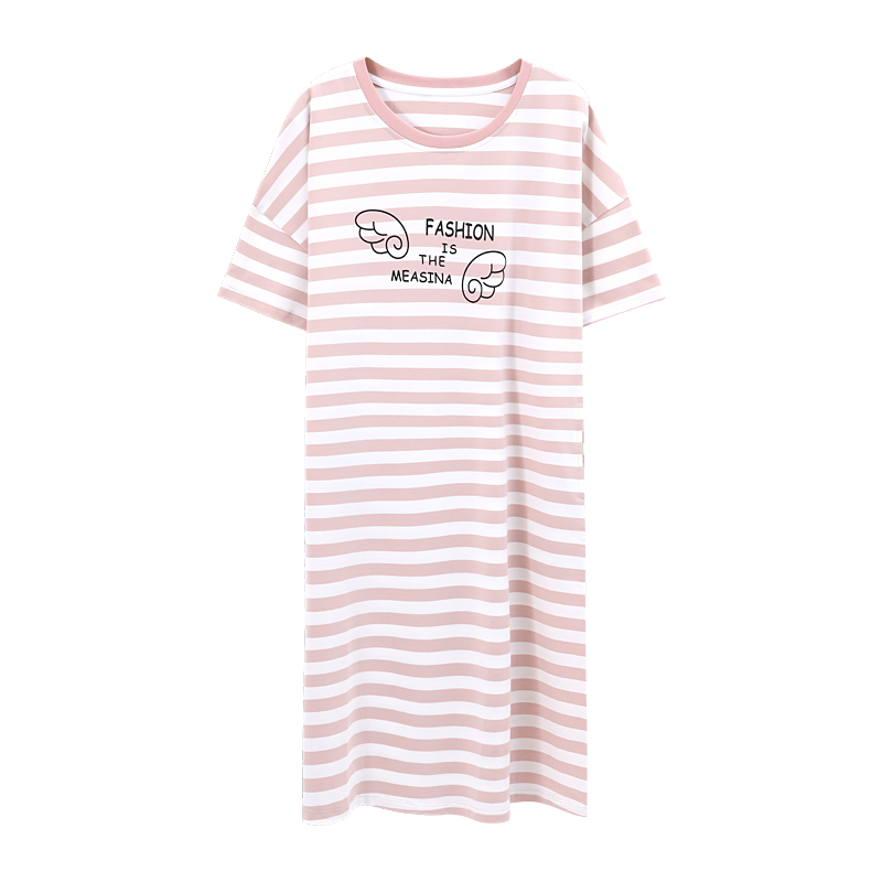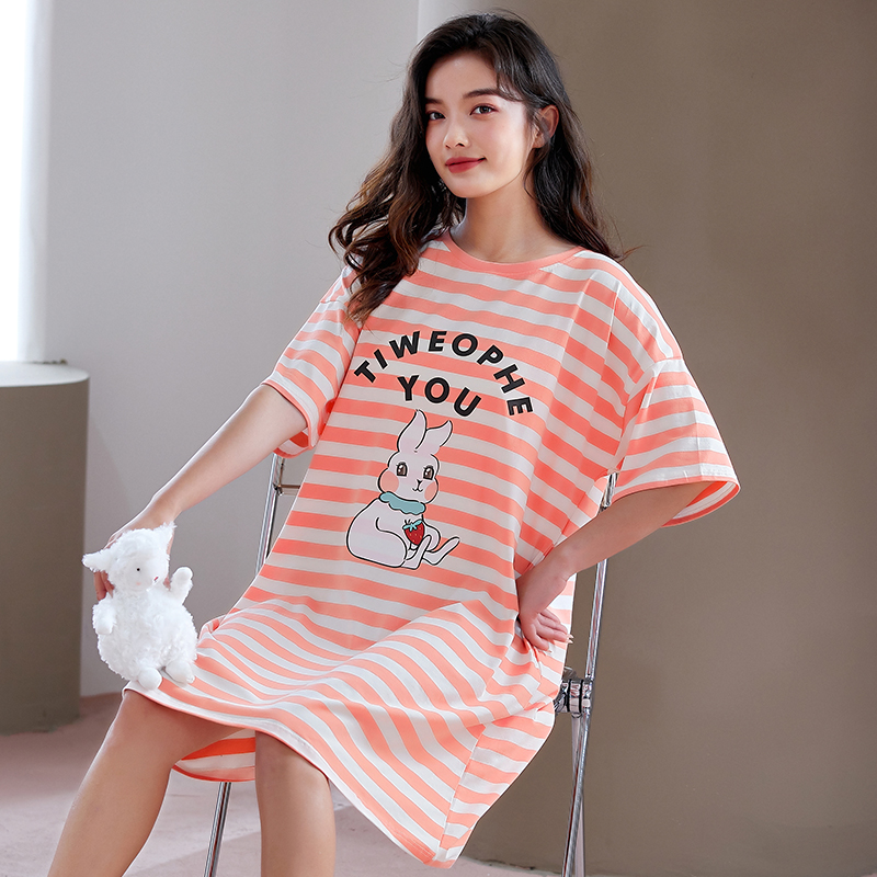 Fenteng Goddess Sleeping Dress Woman Summer Thin pure cotton short sleeve long version over knee 2022 New all-cotton cute pyjamas