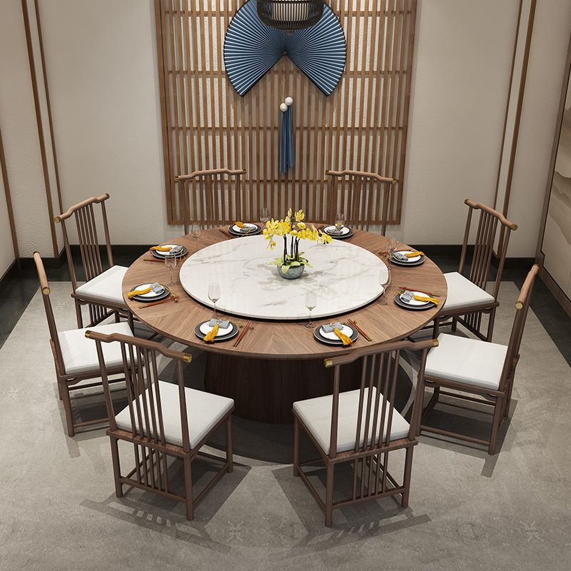 Undertake the star hotel clubhouse Villa Minjuku Sample House Display Center Customizable Turntable Marble Wood Surface Crystalite 1 6 m Manual Round Table (06-08 people) 1 8 m Manual Round Table (