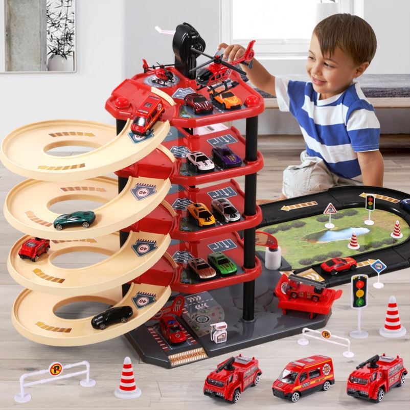 (police section) 5-level track parking lot 4 vehicles (fire section) 5 floors track parking lot 4 cars (police section) 5-floor track parking lot 10 (fire section) 5-layer track stop