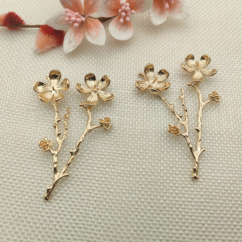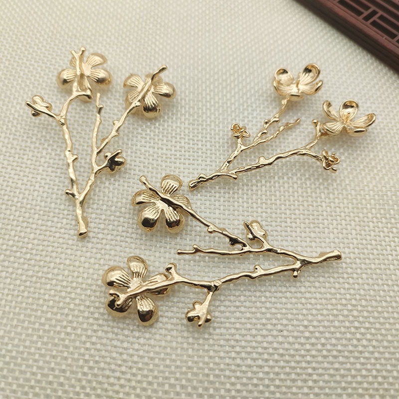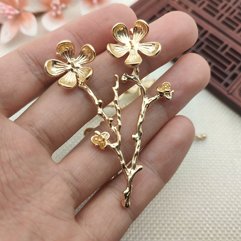 43*65mm cast copper large leaves, flower branches and flowers inlaid materials ancient style handmade hairpin head crown forbidden step diy accessories