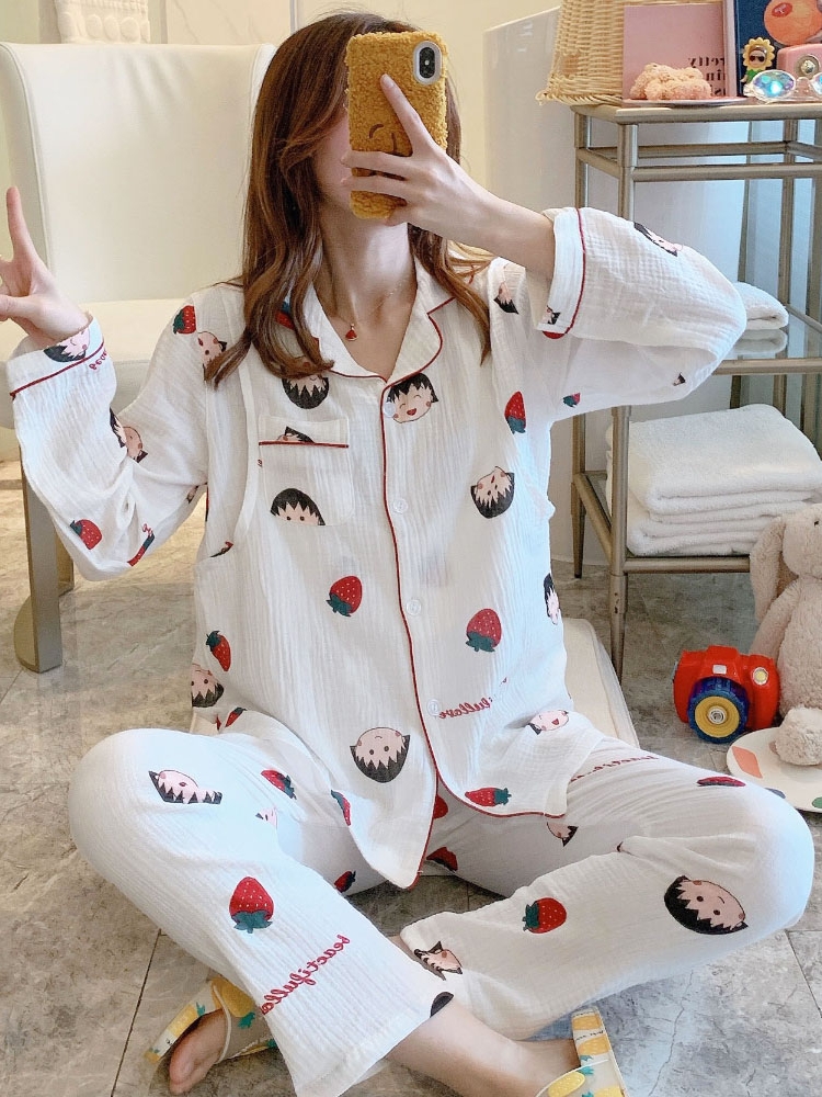 Gauze confinement clothing spring, spring and autumn postpartum pregnant women pajamas cotton autumn and winter maternity breastfeeding pregnancy homewear suit