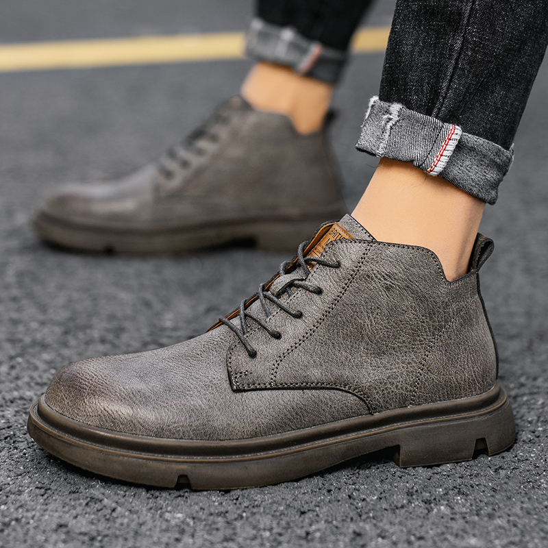Locomotive riding shoes Men's spring Summer Korean version Bull Leather Breathable Locomotive Boots buckle Inn Highway Martin boots