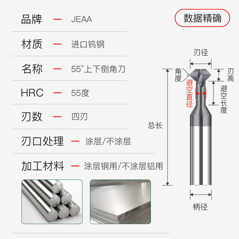 Add-alloy tungsten steel T-type chamfering knife inside and outside up and down 90-degree front and back machining centre coated milling cutter