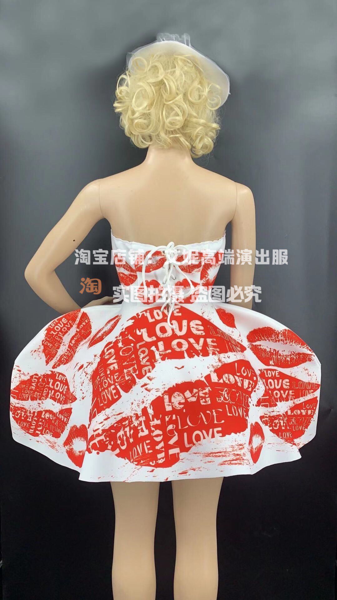TT High-end Nightclub Bar Singer Djds Dance Team Gogo Big-mouth Red Lip Print Breast Dress Fluffy Dress