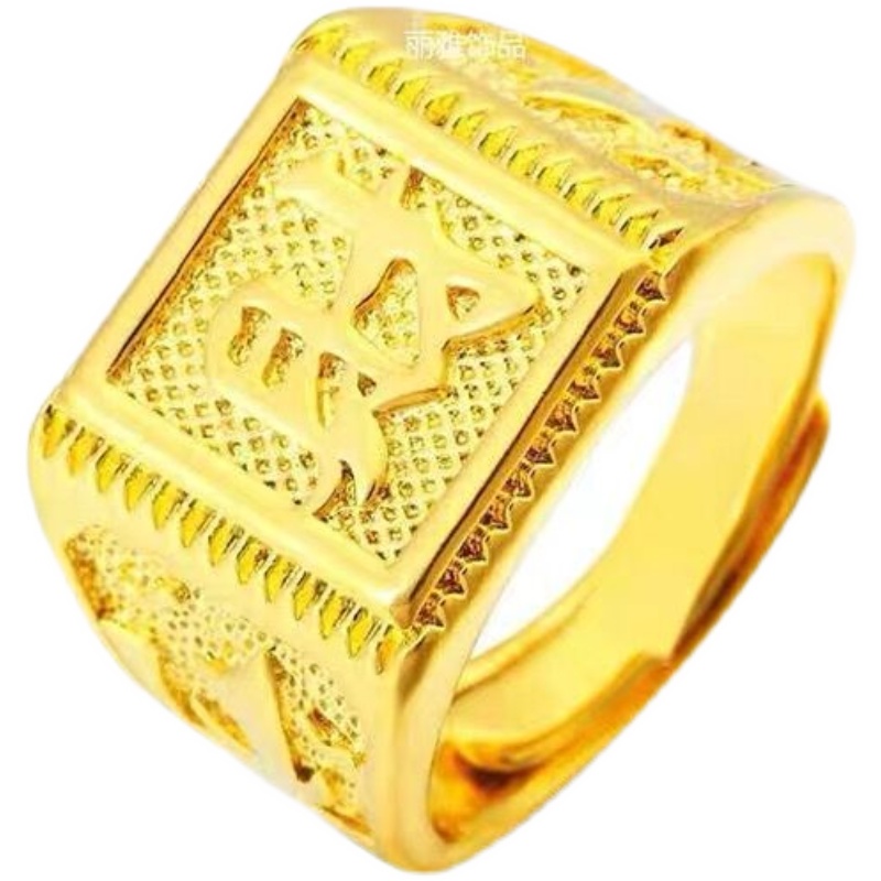Hong Kong 999 True Gold Ring Boy Qingdao Xiao - fang Ring 18k Food Ring to give his father's present