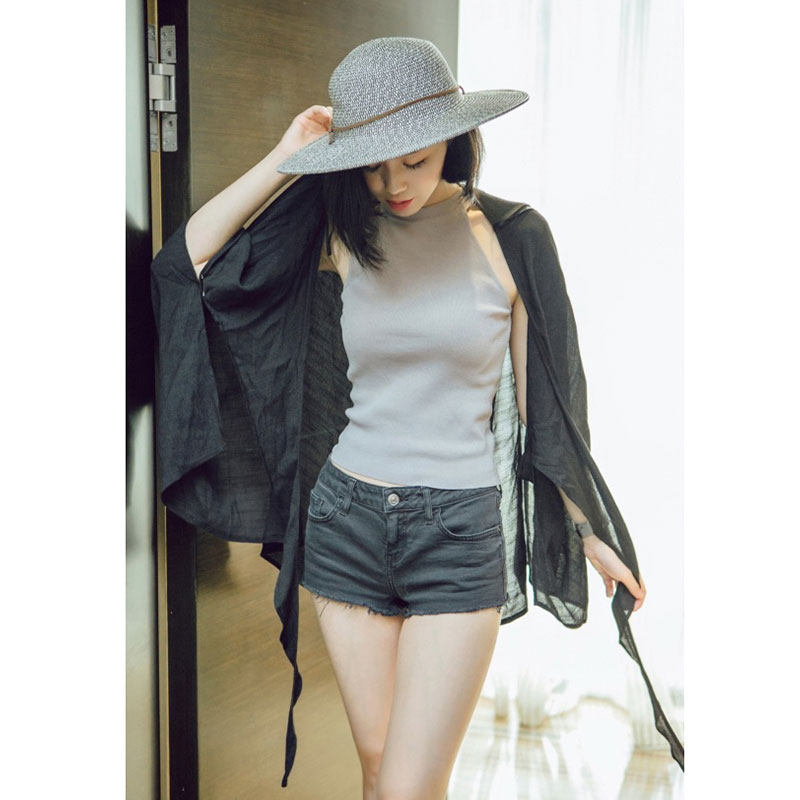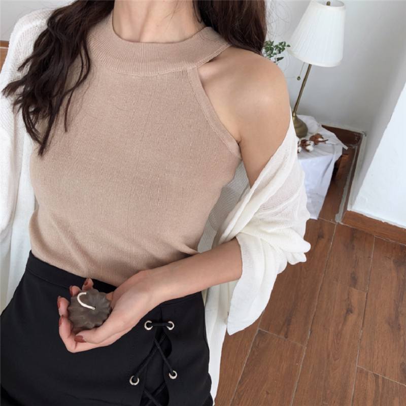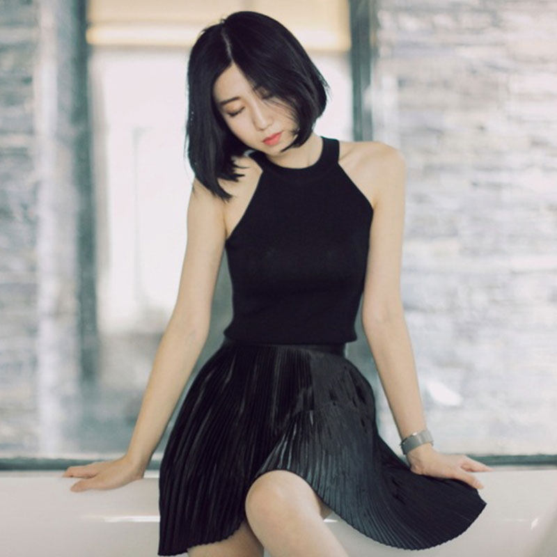 French design sense knitted black hanging neck sling to cover the breast vest female temperament slim fit inside and outside wear summer top