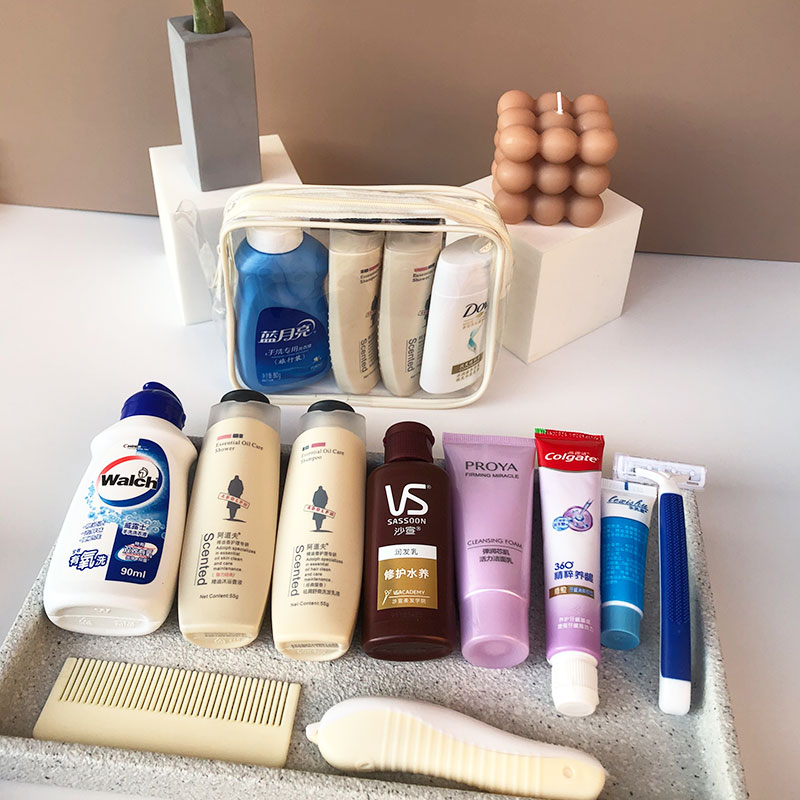 Transparent white grey light grey dark grey base suit (shampoo milky shower) square bag one (three sets) square bag two (four sets) square bag three (four sets) square bag four (five pieces) square bag five