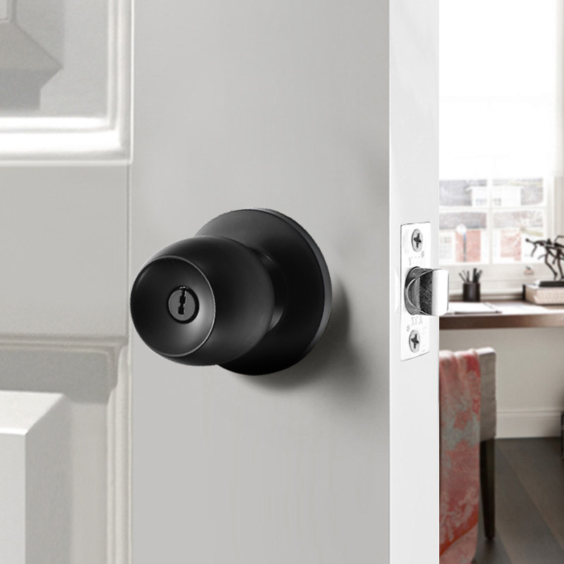 Black spherical lock aluminum alloy door lock household room bedroom lock room lock bathroom stainless steel ball lock