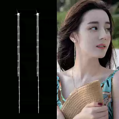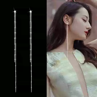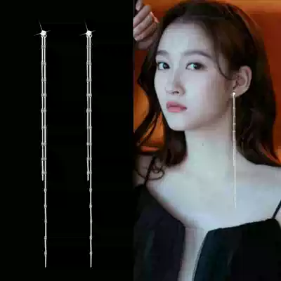 Earrings 2021 New Tide temperament goddess fan cold wind super long sterling silver tassel hypoallergenic slim ear needle female
