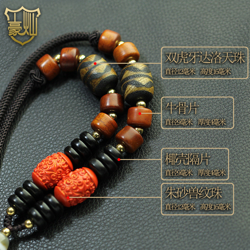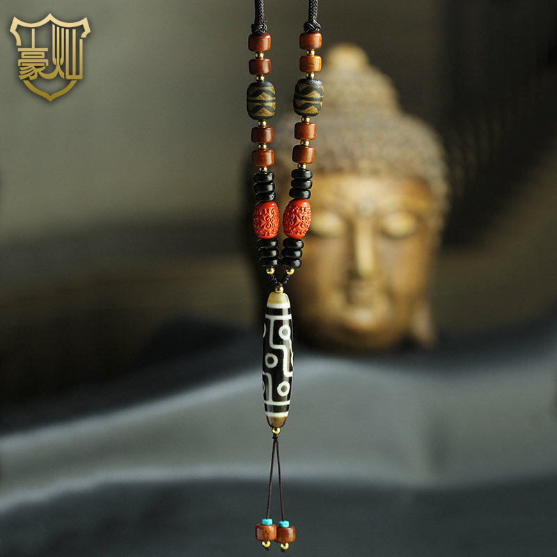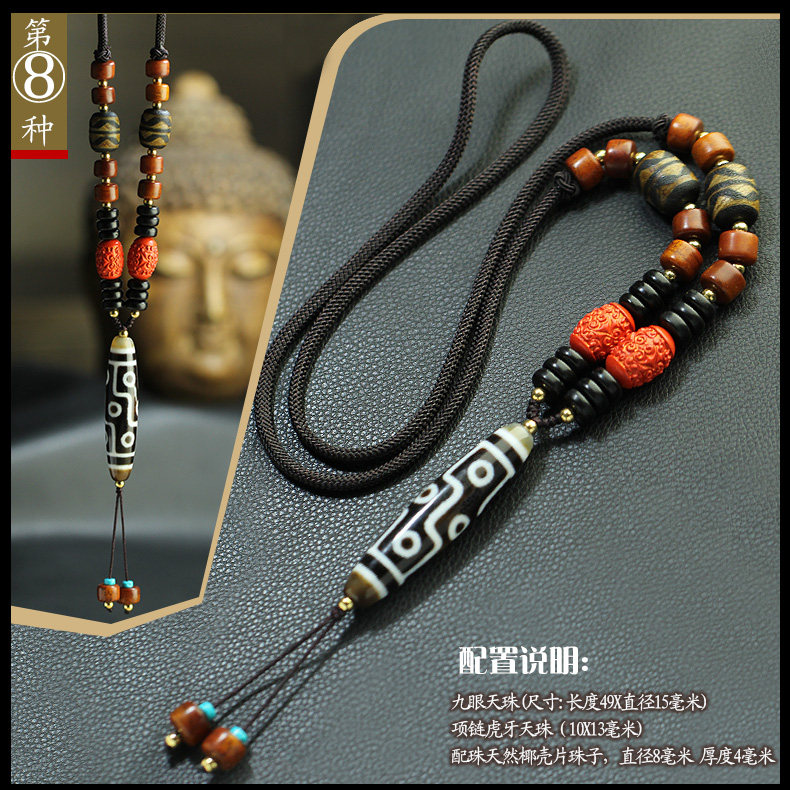 Tibet Nine Eyes Dzi Necklace Pendant Cinnabar Beef Bone Duobao Tiger Tooth Dzi Necklace Pendant Male and Female Couple Dzi Dzi