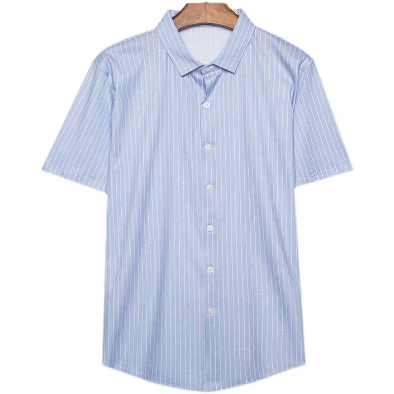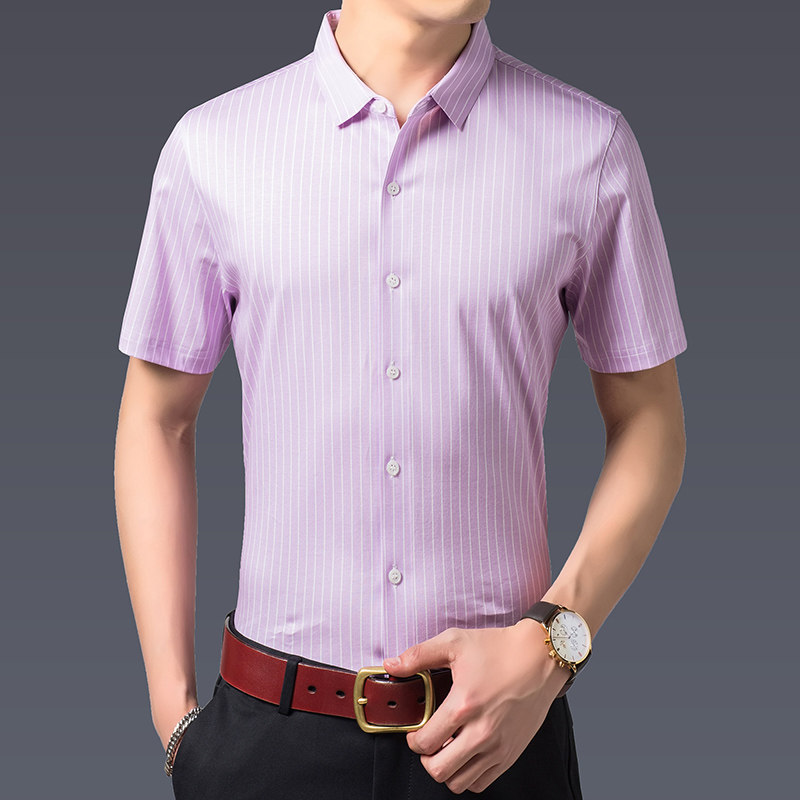 Summer Short Sleeve Shirt Male Advanced Sensation Mulberry Silk Business Casual Stripes High-end Free Ironing Middle-aged Men's Shirt Thin