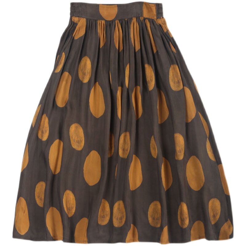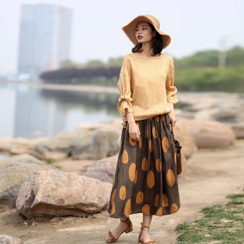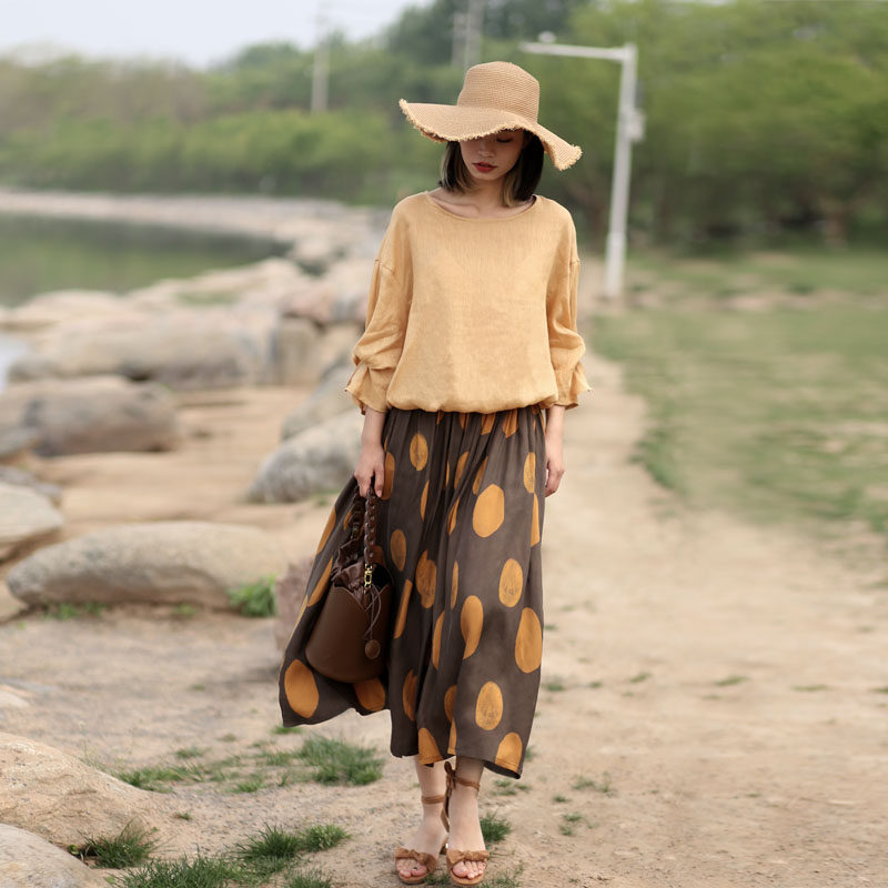 Elegant long skirt coffee color polka dot skirt a-line summer thin section hip-covering skirt slimming cupro silk skirt