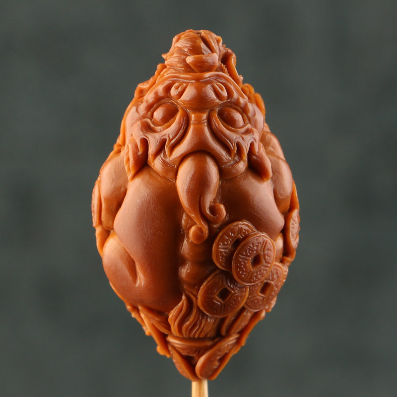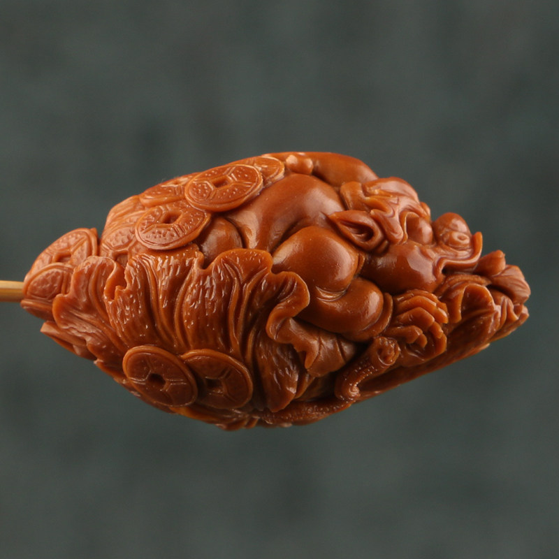 2 2x38cm (Pixiu) Chen Renhua's Olive Kernel Carving Three-flower Oil Kernel Single Seed Pendant