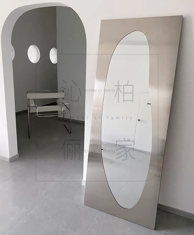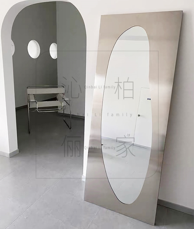 Stainless steel flooring mirror against wall shapes wearing mirror art audiotype in wind light luxury