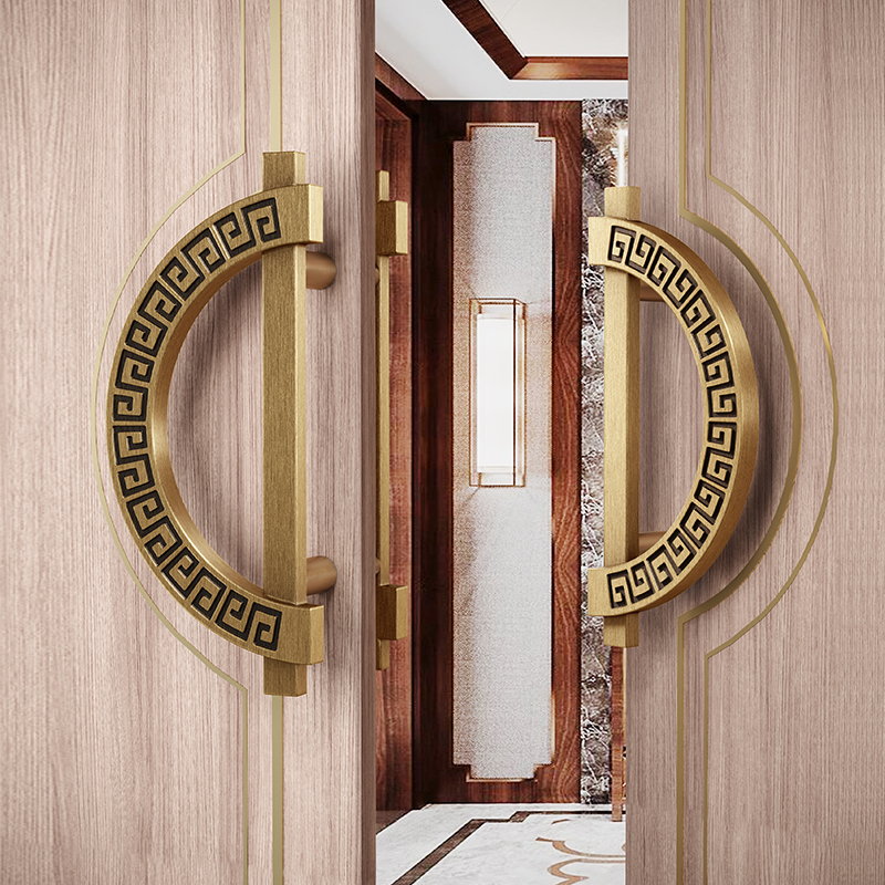Antique handle glass door new Chinese double door handle hotel club box sliding door armrest cabinet door decoration