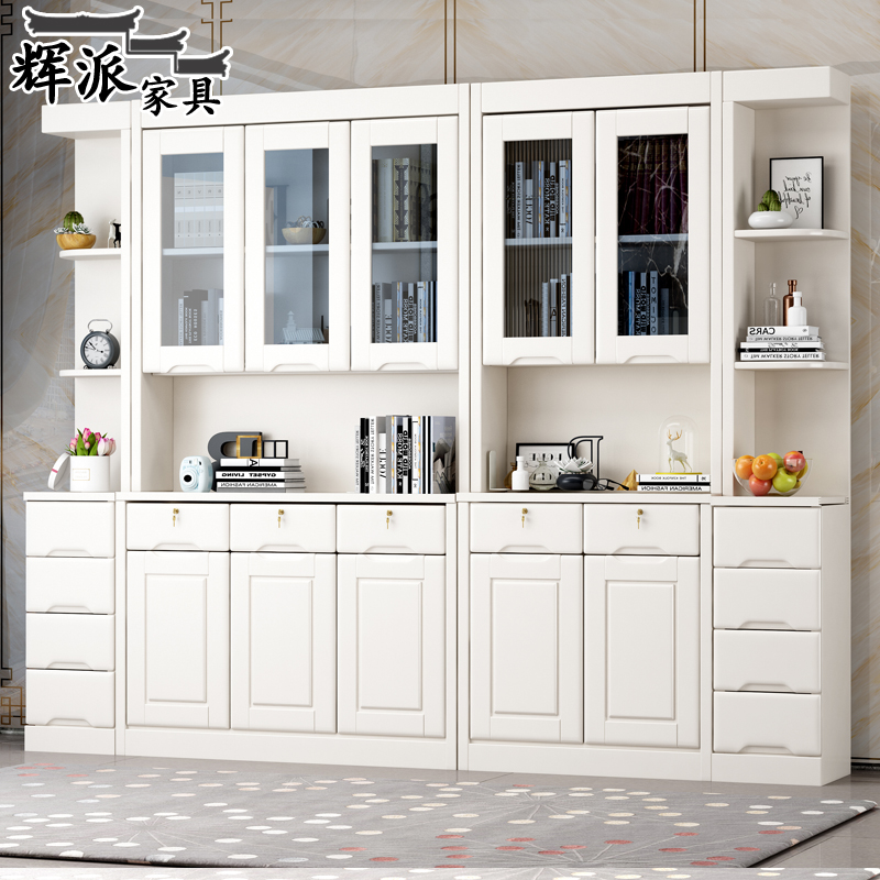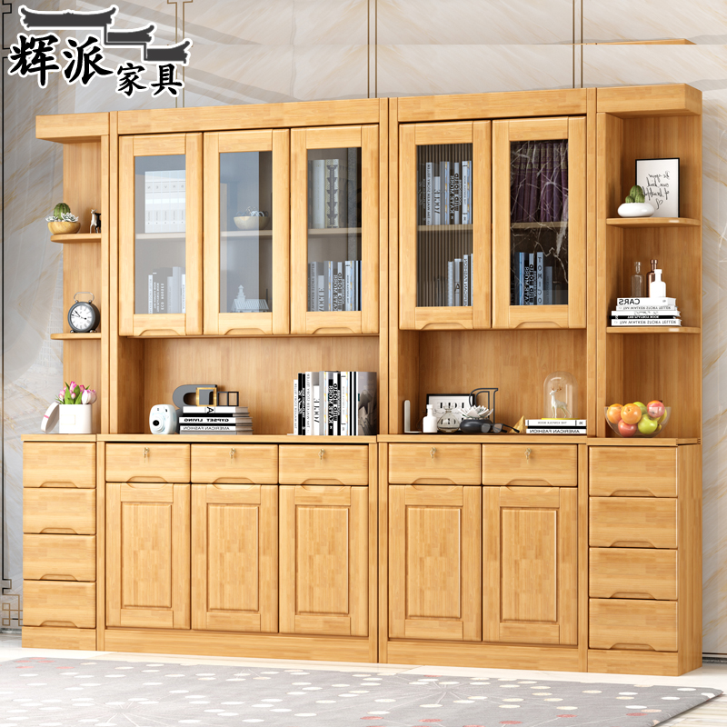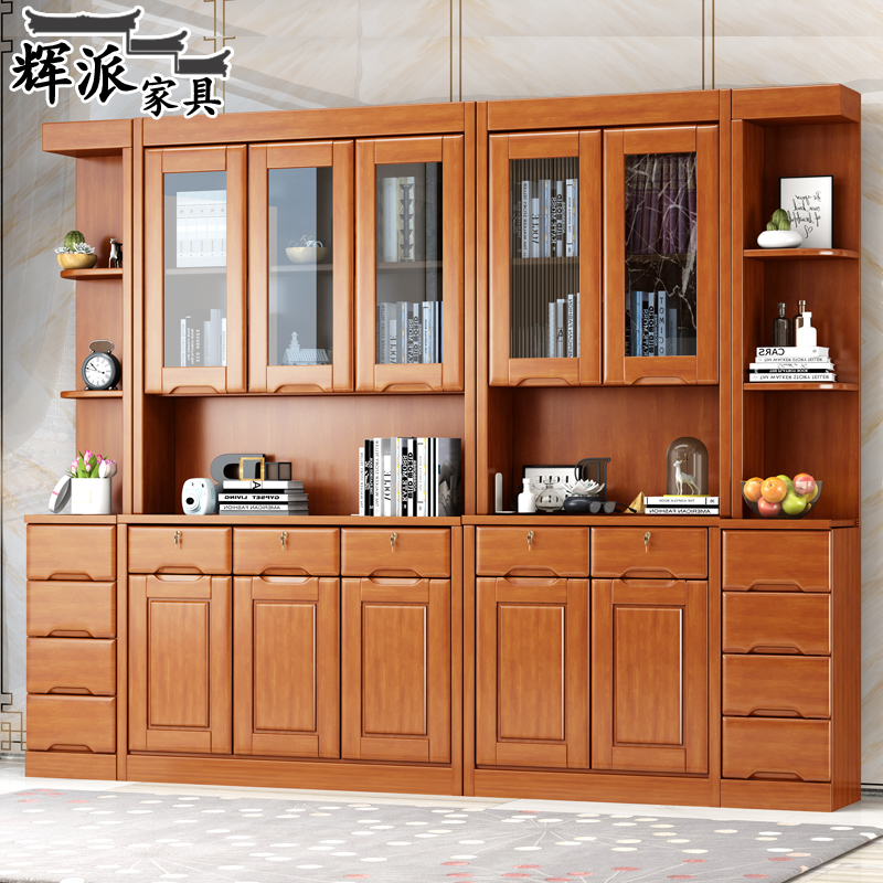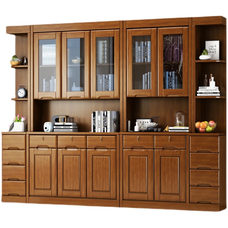 Chinese-style solid wood bookcase two-door three-door free combination study corner simple bookcase storage cabinet with lock glass door