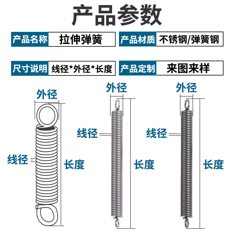 Spring Steel Stainless Steel Double Hook Size Tension Spring Powerful Band Hook Stretch Pull Brake Slang Yellow Oven Door Custom Made