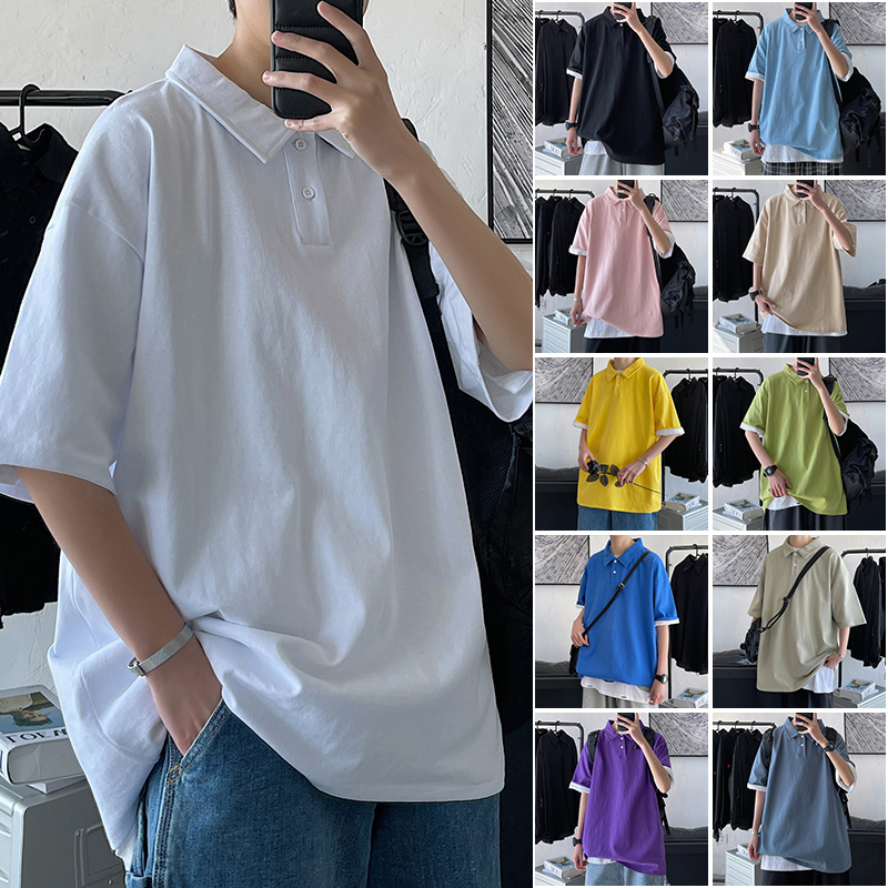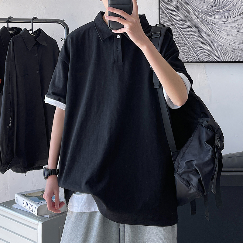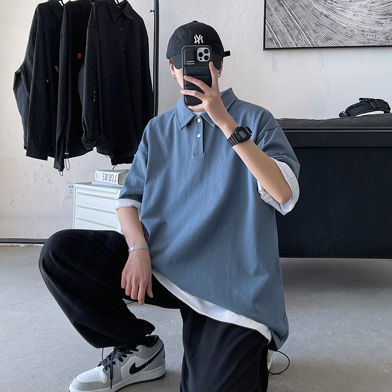 POLO shirt male short sleeve t-shirt Chains with loose 100 lap 50% sleeves T-shirt trendy pure color flipped half sleeve blouse