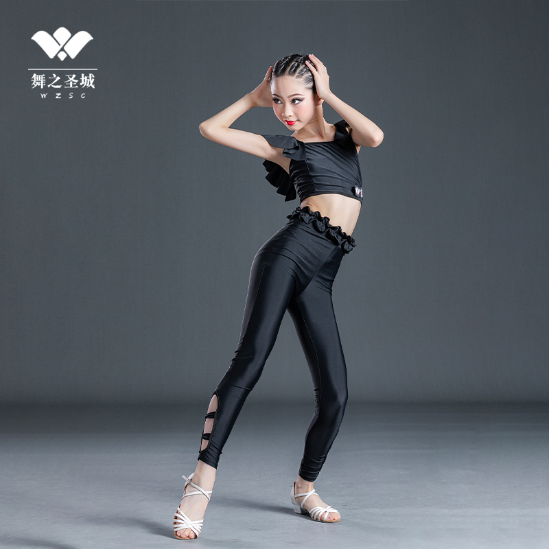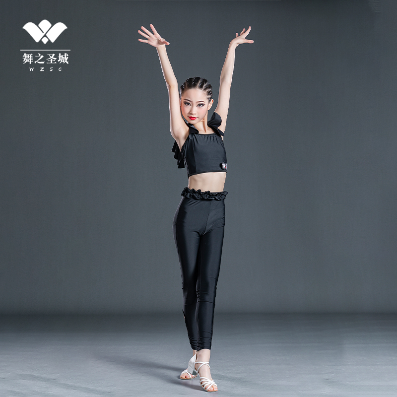 Latin dance clothing children's female practice clothing short-sleeved summer suit Chinese dance national standard dance professional competition performance dance pants