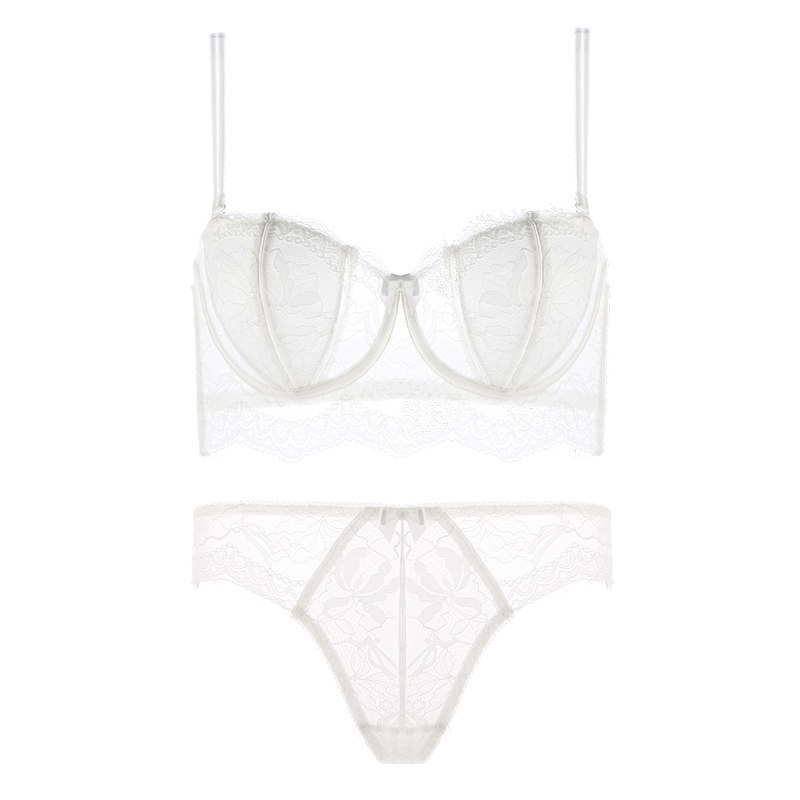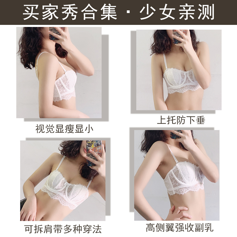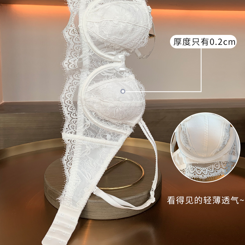 French underwear women's thin summer big chest small anti-sagging bra ultra-thin sexy lace white bra set
