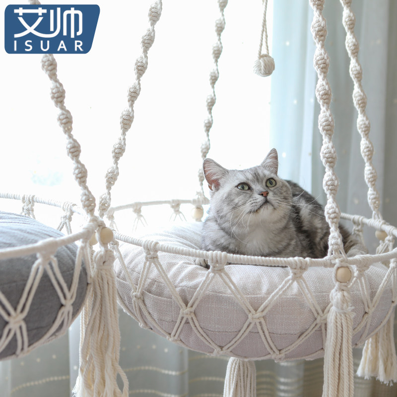 Cat Hammock Cot Cat Swing Set Up Nest Rope Woven Mesh Red Cat Nest Four Seasons Universal Window Hanging Basket Balcony Hanging Bed Sunburn Sun