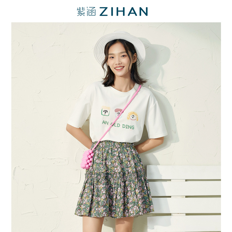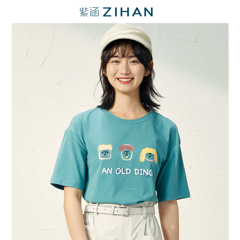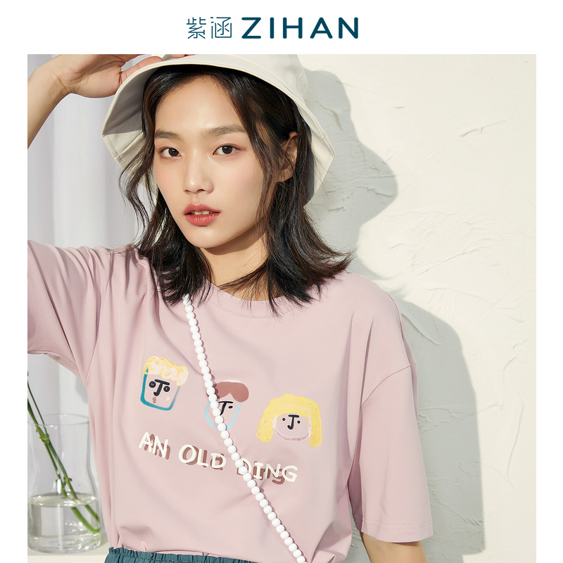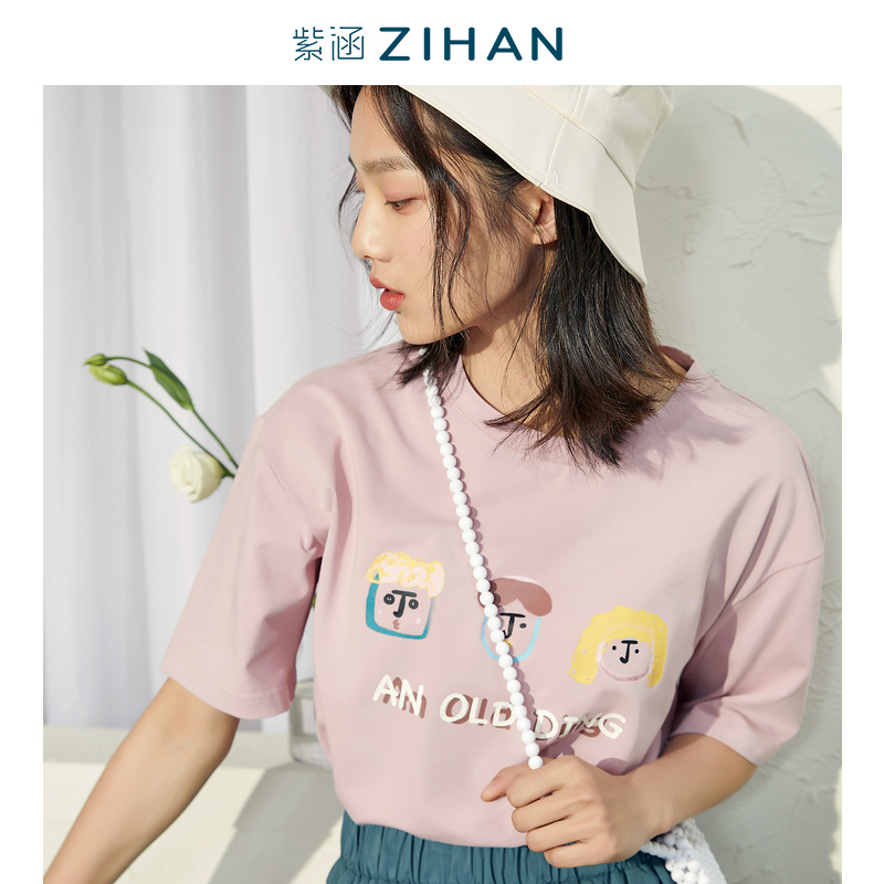 Purple Han Summer New Fun Cartoon Printing Short Sleeve T-shirt Top Tide Round Needle Comfortable Breakthrough T-shirt