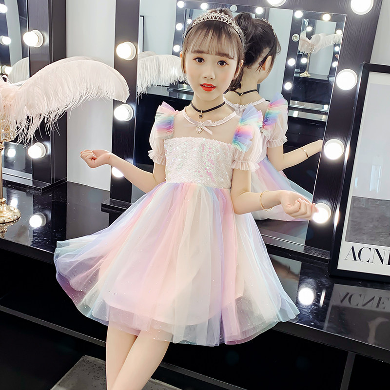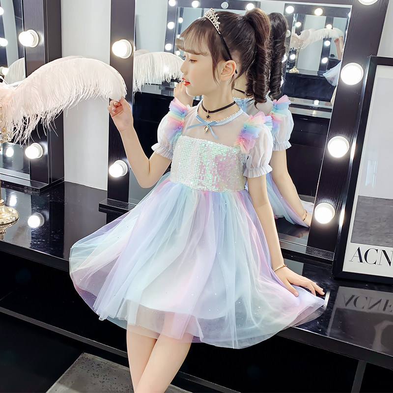 June 1 children's performance costume fluffy gauze skirt girl skirt kindergarten dance costume girls summer dress rainbow dress