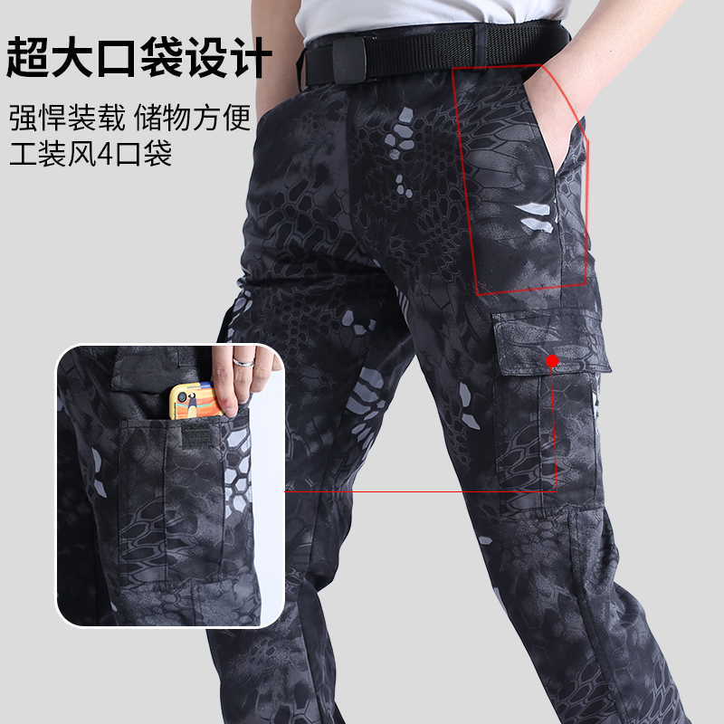 Camouflage pants men's overalls labor insurance military training pants wide spring and autumn construction site work pants loose wear-resistant dirty-resistant work pants