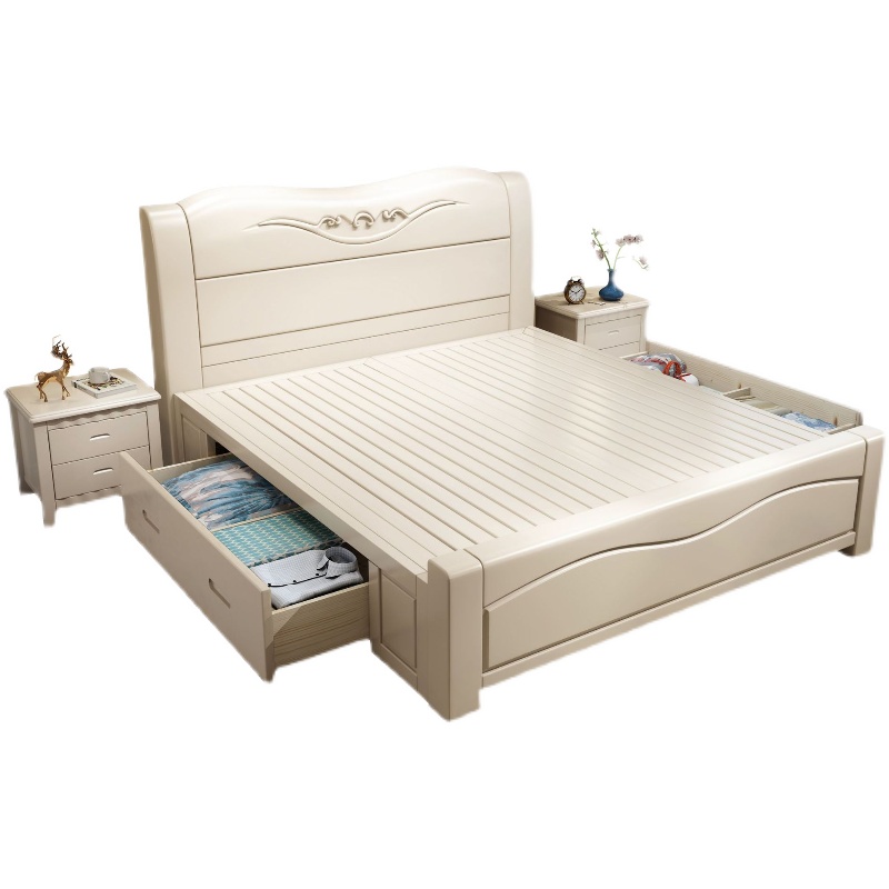 Modern minimalist solid wood bed double bed 1 8m panel new white paint factory direct sales storage oak wedding bed