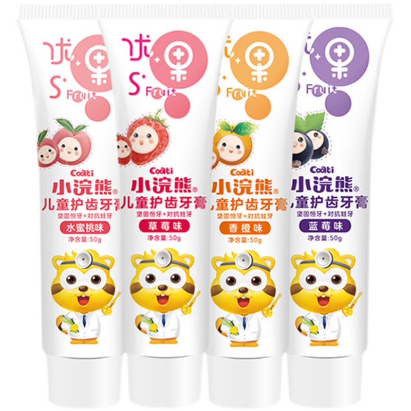Little raccoon children's toothpaste fluorine-free tooth protection baby changing teeth anti-moth primary school students adult baby solid gum toothbrush
