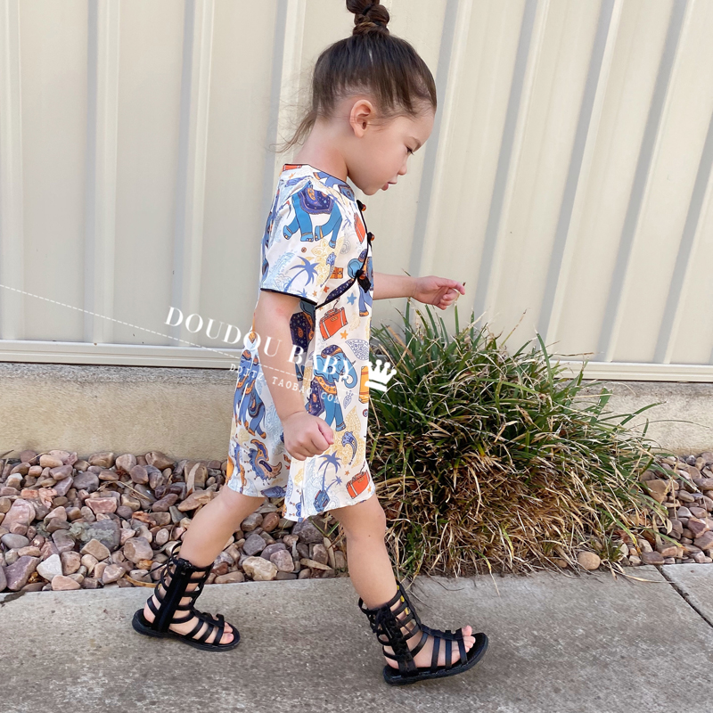Little Girl Qipao 2021 Summer Dress New Girl Skirt Child Baby Retro Qipao Dress Loose and thin Flagship Robe