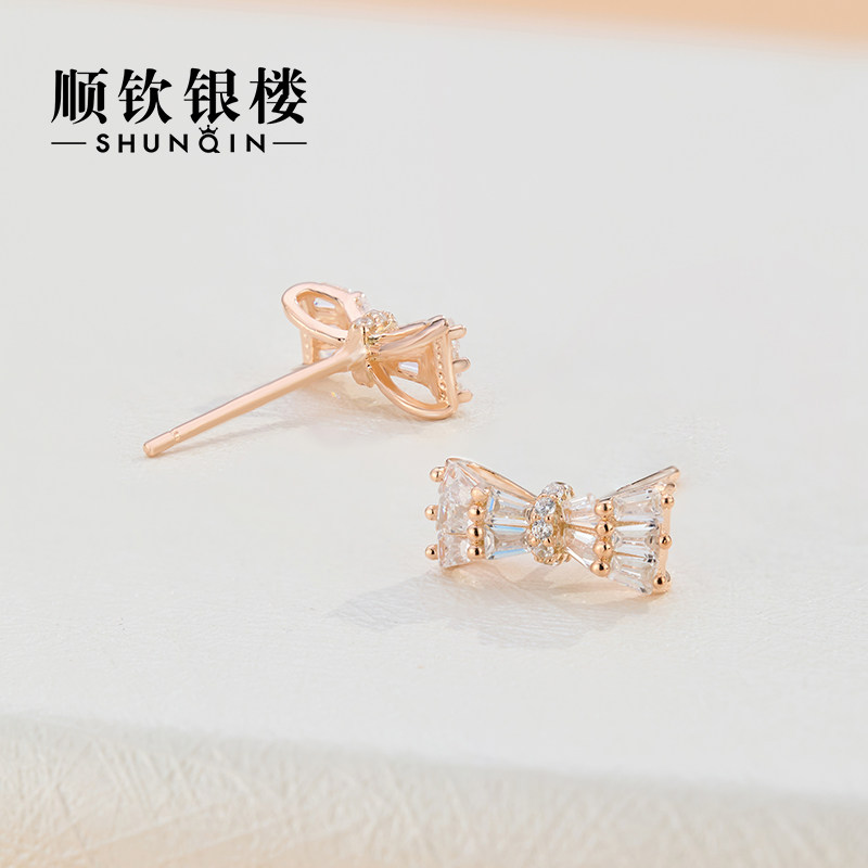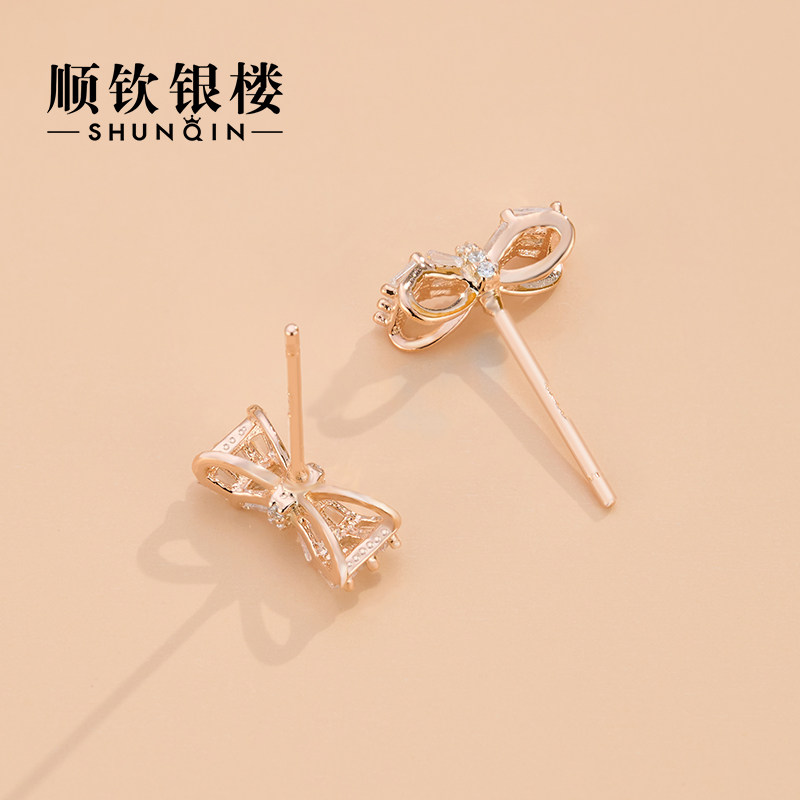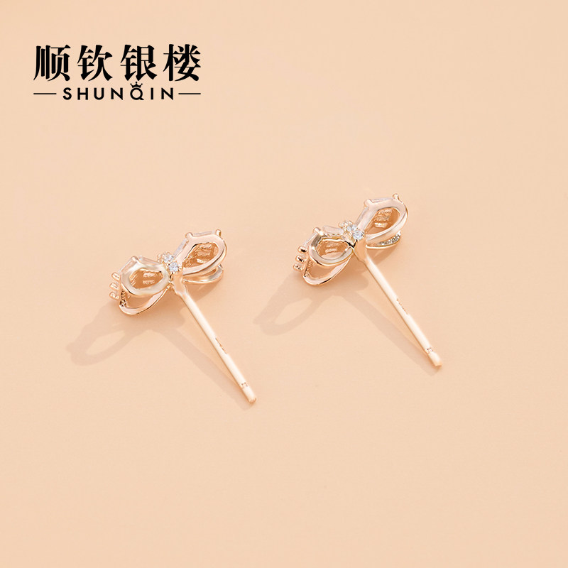 Shunqin Yinlou S925 sterling silver earrings simple bow earrings female fairy spirit ins niche design new style