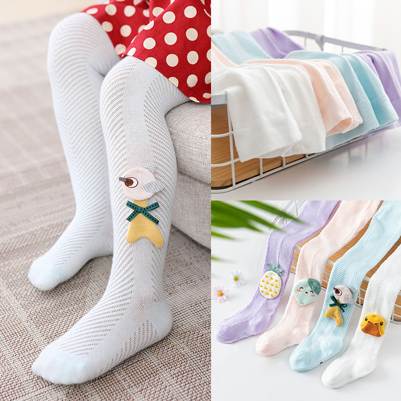 Children's pantyhose girls spring and summer thin section white mesh dance socks pure cotton baby leggings