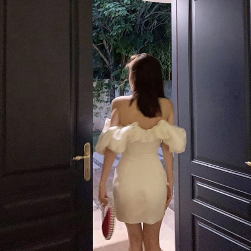 Korean version of the new sexy waist thin A- line dress female spring temperament socialite age age reduction word collar dress ins tide