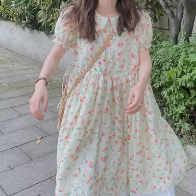 Floral dress female 2021 summer student female loose French gentle wind cute doll collar double fairy dress