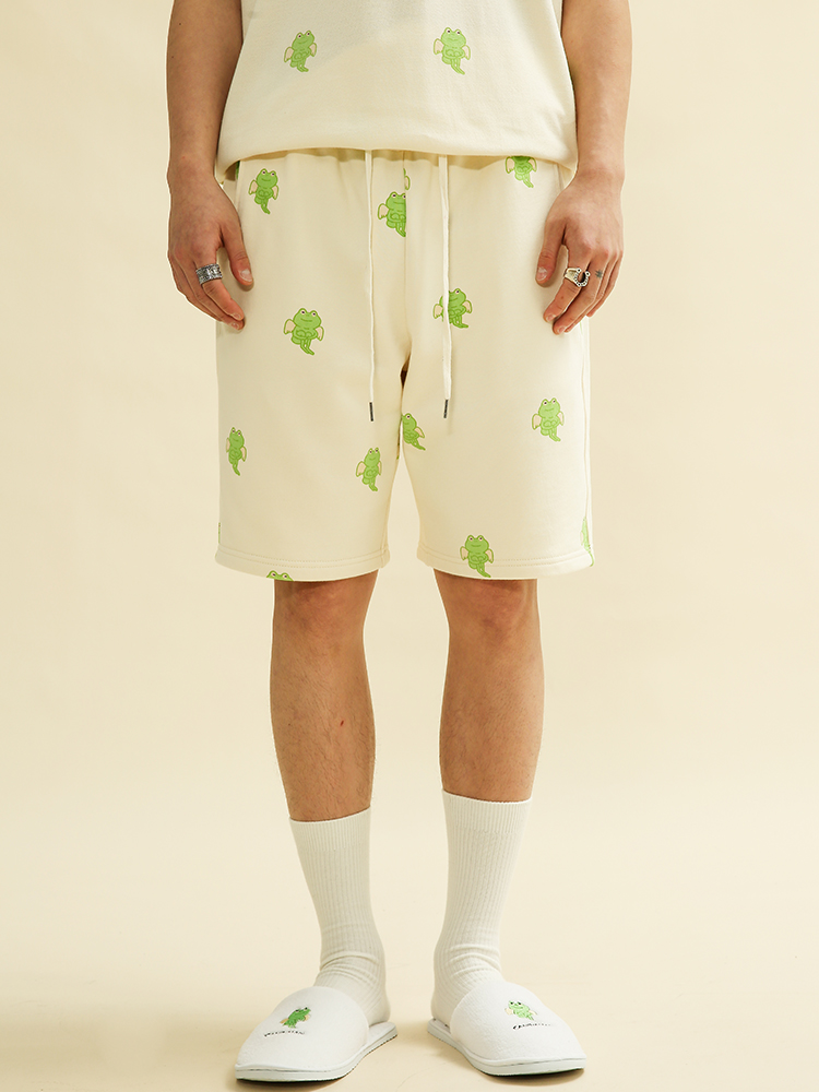 Candymade 21ss NATURE series summer couple full print frog beige casual five-point shorts