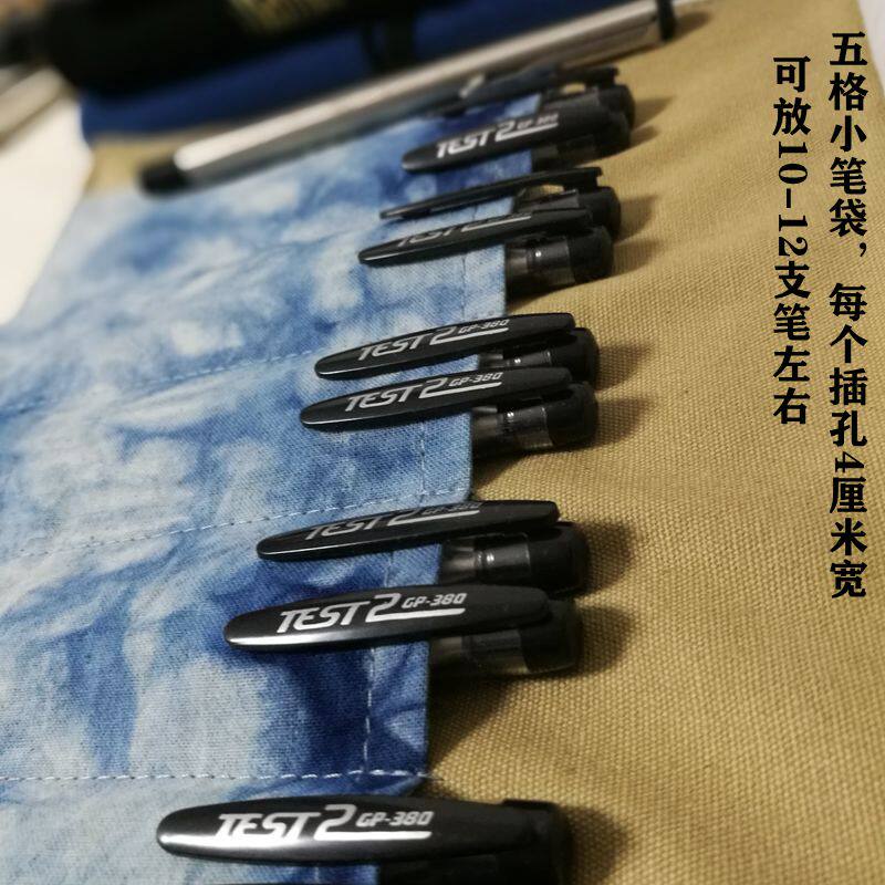Black washed cotton and linen color bronzing corrugated five-grid small pen bag