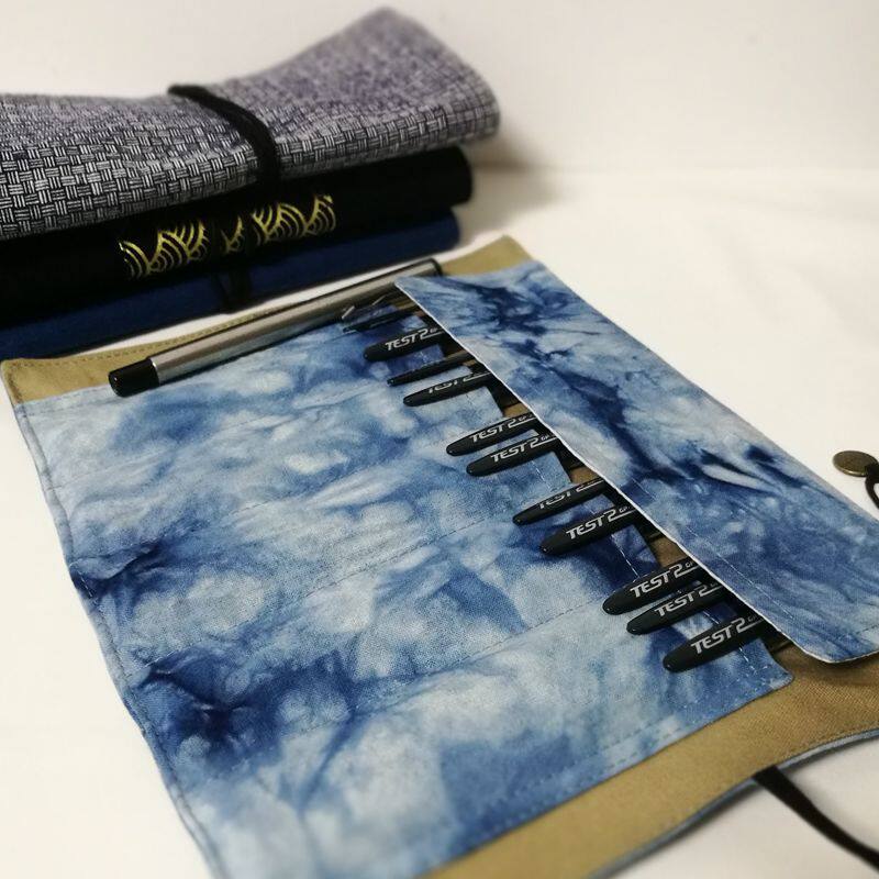 Blue handmade tie-dye (cloud dye) five-grid small pen bag