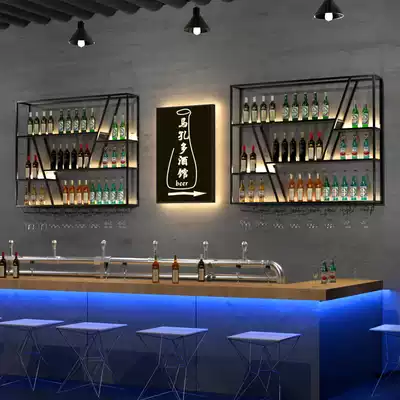 Bar bar wine rack wall hanging wine cabinet dining room wall rack iron creative red wine cabinet wall decoration bar wine rack