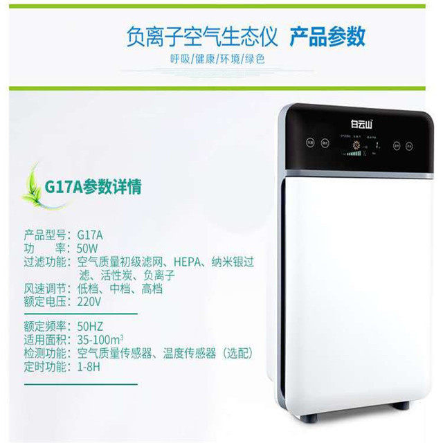 White Yunshan Air Purifier Eco-meter negative ion bedroom with formaldehyde to dust smoke indoor new house strainer G17A