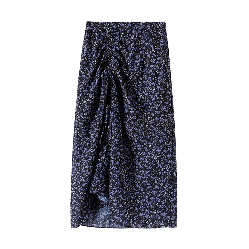 FENPERATE French style design feeling small and irregular lotus leaf side temperament high waist display slim fit half body dress woman