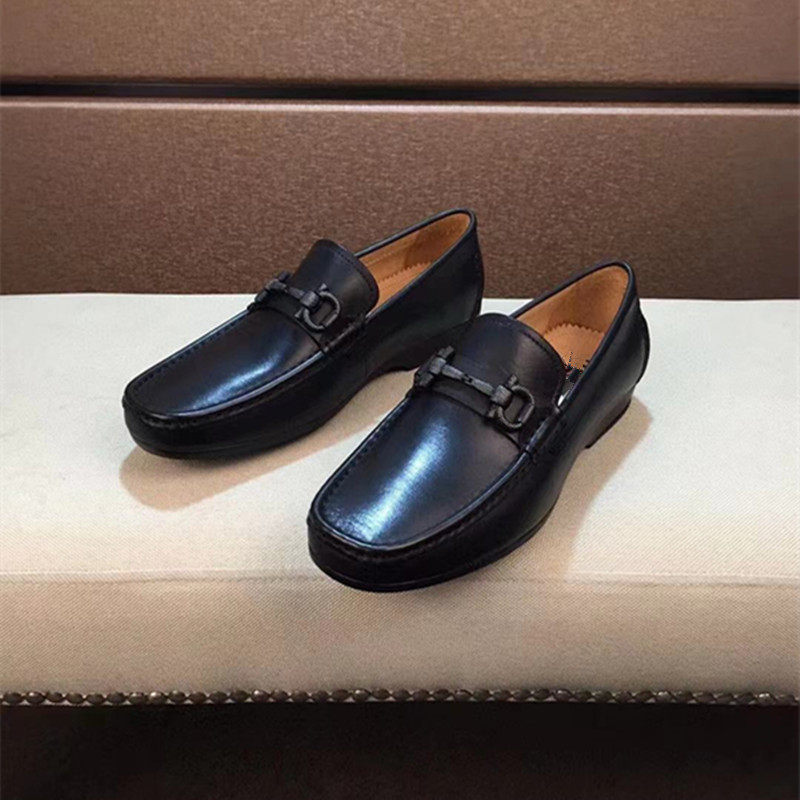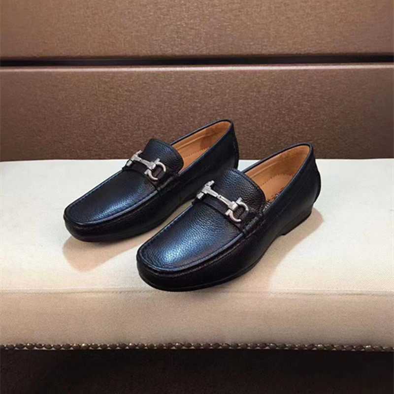 European station men's shoes breathable square head cover foot buckle a pedal casual Korean version of the youth high-end lychee pattern loafers