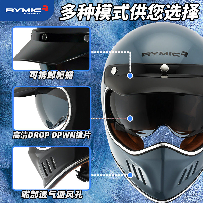 RYMIC 3C certified motorcycle helmet Harley locomotive retro helmet men and women racing helmet Four Seasons Universal running helmet