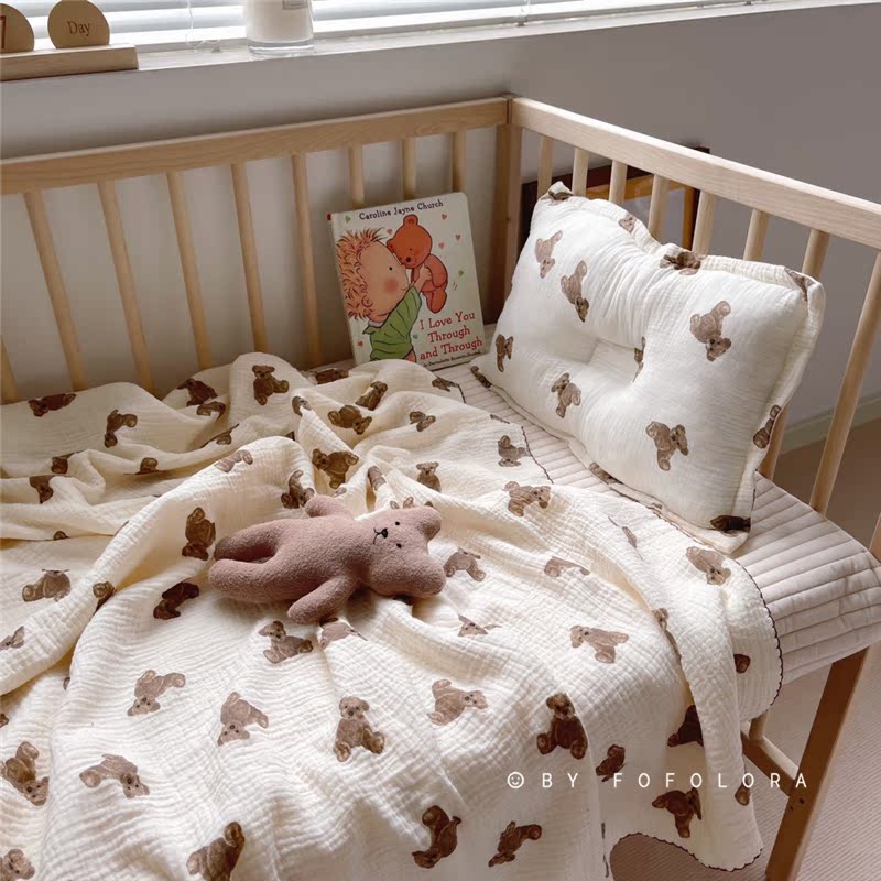 South Korea Ins Little Bear gauze towels Summer thin cover Blanket Newborn Baby Full Cotton Wrap by Baby Nap Blanket