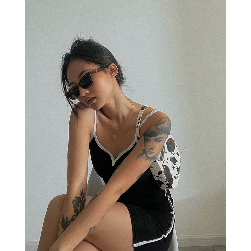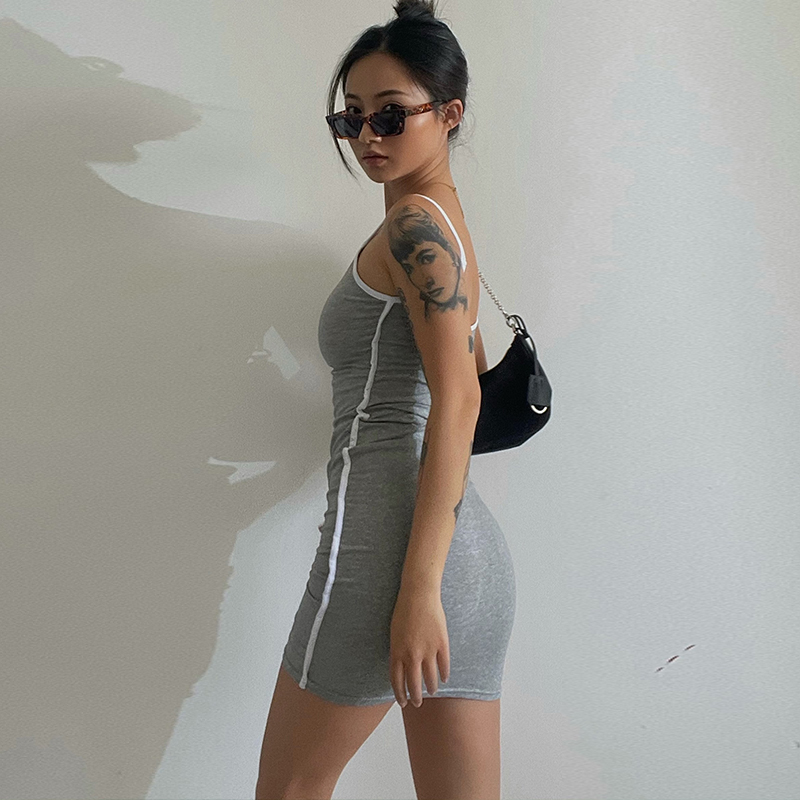 Tennis Vest Movement Sashimi Elastic Splicing Retro Display Slim Harness Honey Peach Hip Tight Body Sexy Hot Girl With Dress