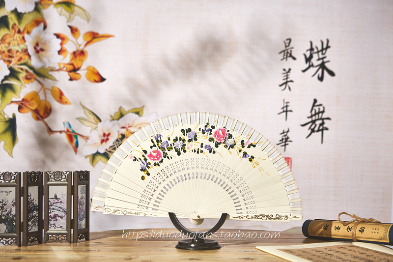 Spanish dance fan red double-sided solid wood dance fan Flag gown walking show stage performance fan red fan folding fan