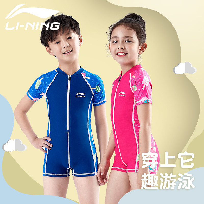 Li Ning children's swimsuit boys and girls one-piece swimsuit medium and large children split swimsuit sun protection quick-drying swimming trunks set