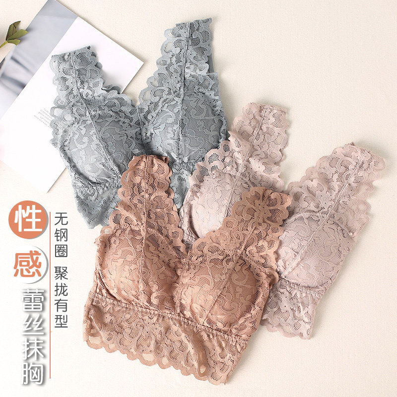Lace underwear women's summer thin bandeau small chest gathered without steel rim wrapped chest anti-walking beauty vest bra cover