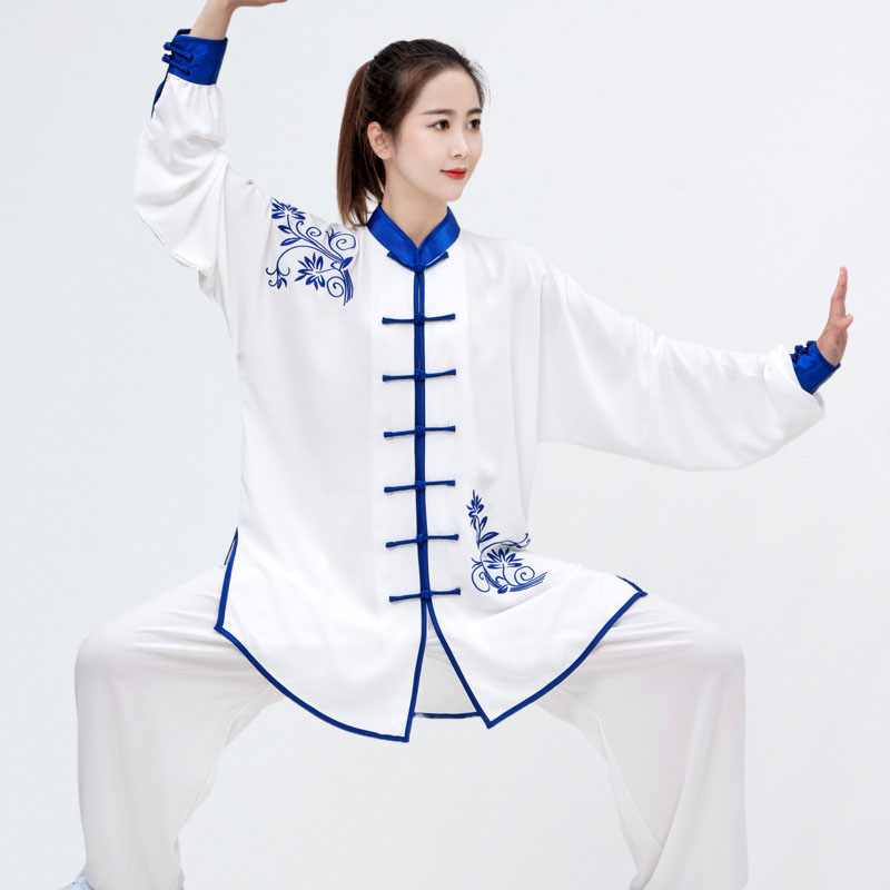 Men's style Spring and autumn new flutter white collar bamboo leaves plum embroidered Tai Chi clothes women's eight sections of Jintaijiquan Martial Arts and Martial Arts
