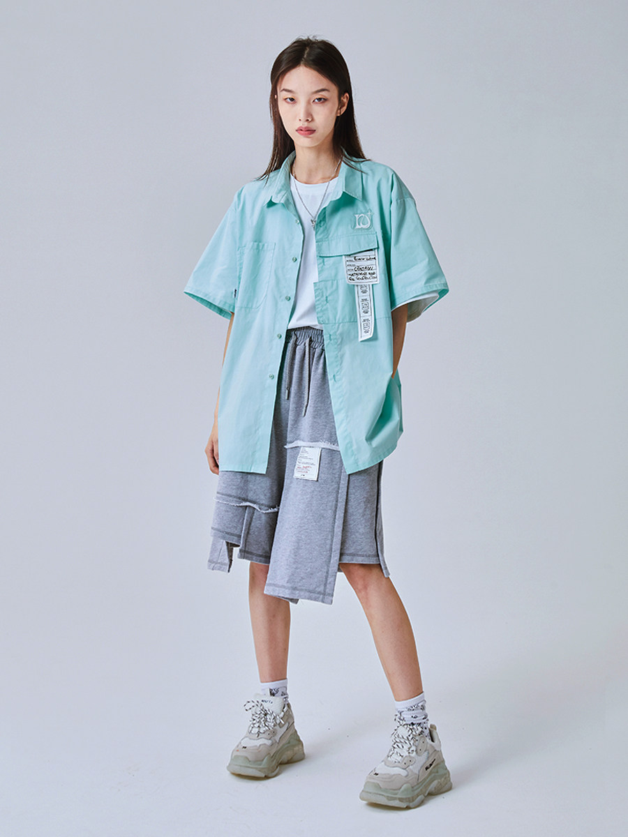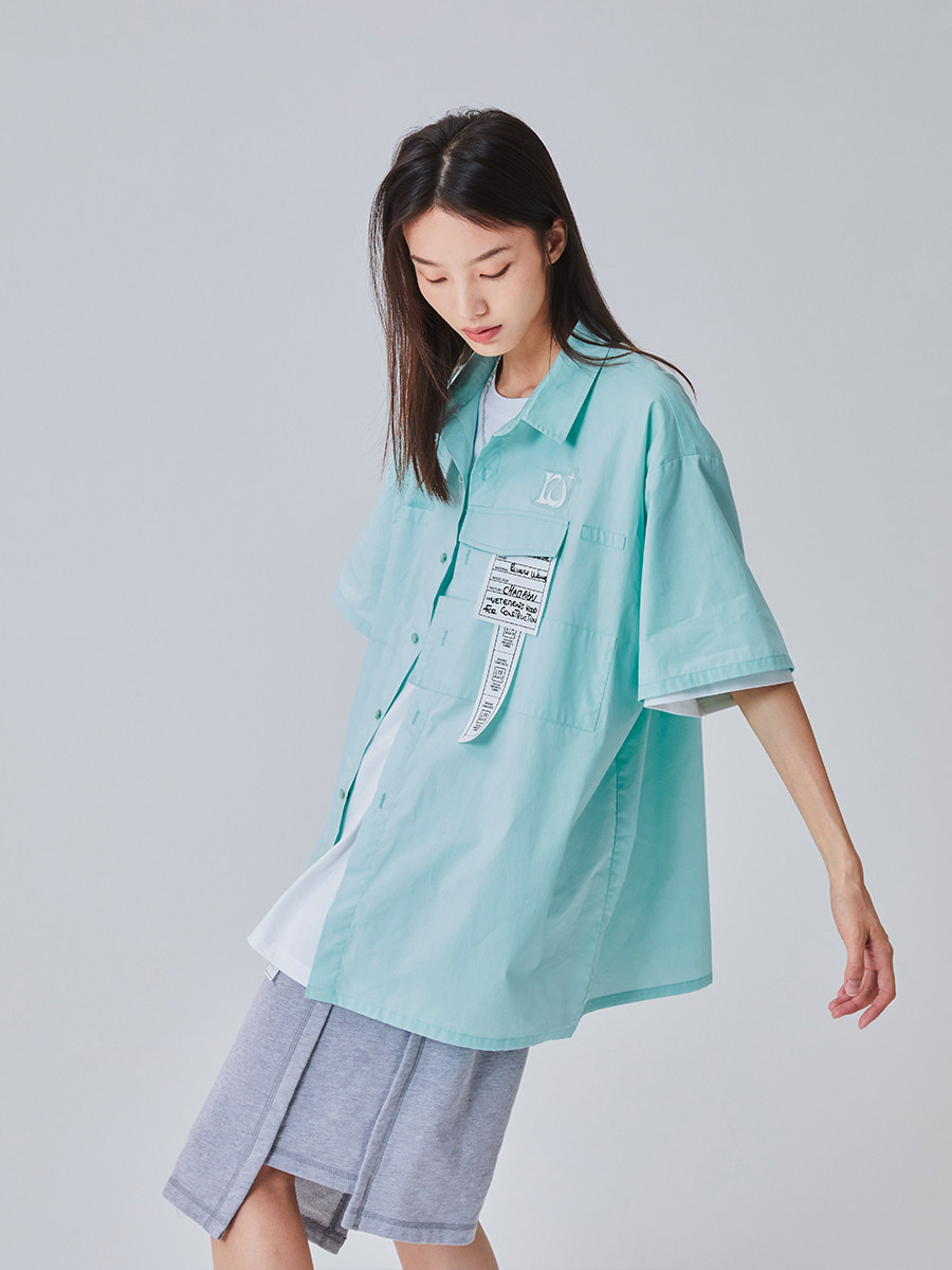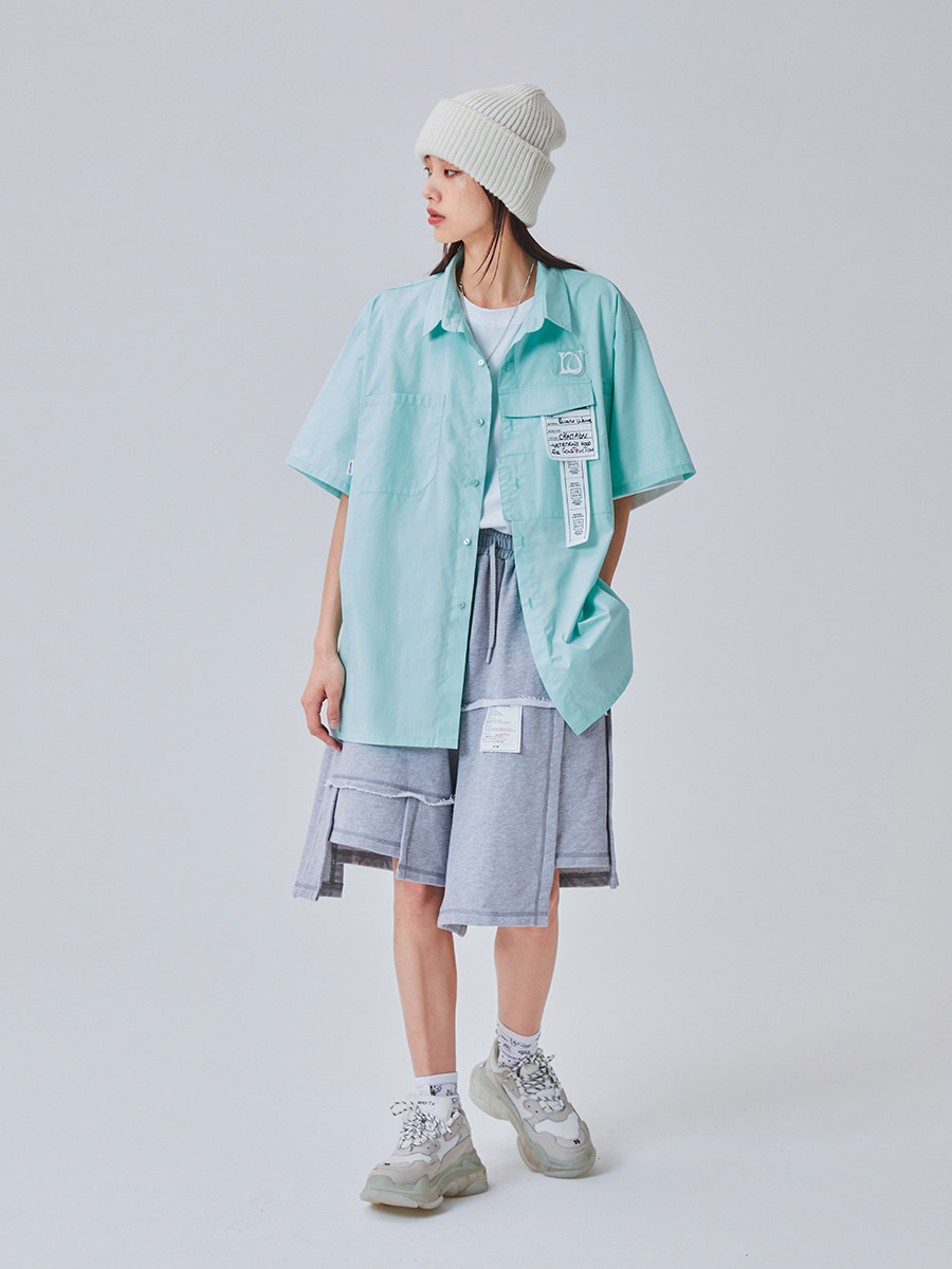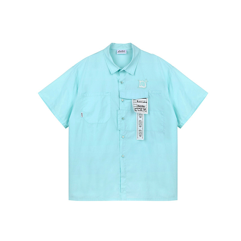 LKONE Original design Tide Cards Short Sleeve Shirt Summer Blue National Tide Casual Lovers Dress Coats Men and women